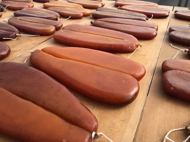 烏魚子是採烏魚的卵而非灌模的 ,所以每片烏魚子皆有其獨特性,故外觀大小、色澤、重量皆不相同,每片重量誤差為10%,出貨以商品總重量為準。產品特色