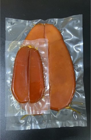 烏魚子是採烏魚的卵而非灌模的 ,所以每片烏魚子皆有其獨特性,故外觀大小、