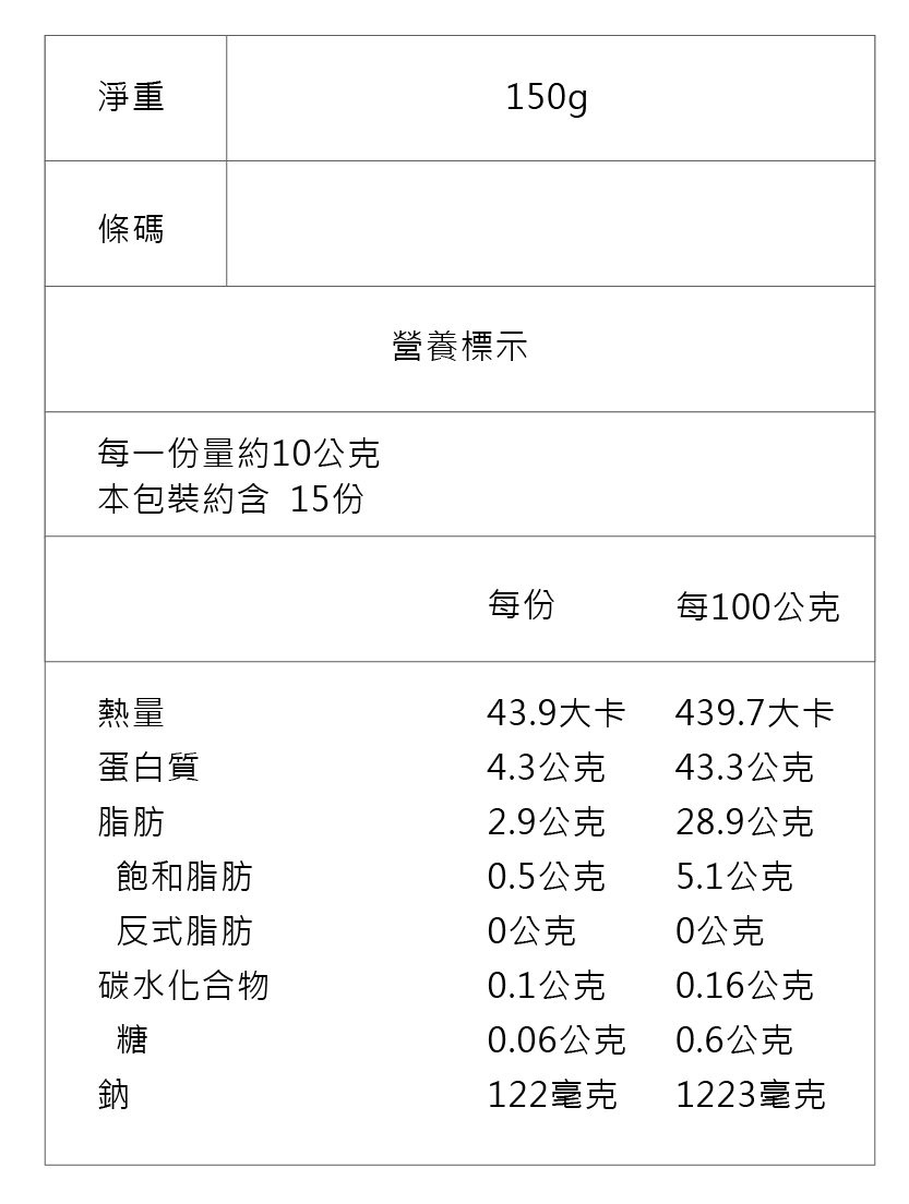 注意事項 烏魚子是採烏魚的卵而非灌模的 ,所以每片烏魚子皆有其獨特性,故外觀大小、色澤、重量皆不相同,每片重量誤差為10%,出貨以商品總重量為準。 產品特色 百分之百野生烏魚 無添加防腐劑及抗生素 口感綿密飽滿Q彈 品質嚴格把關定期產品檢驗 遠近馳名的老師傅,要求完美精湛的技術,獨有40年的傳統工法 送禮送到心坎裡 票選最佳伴手禮 營養標示